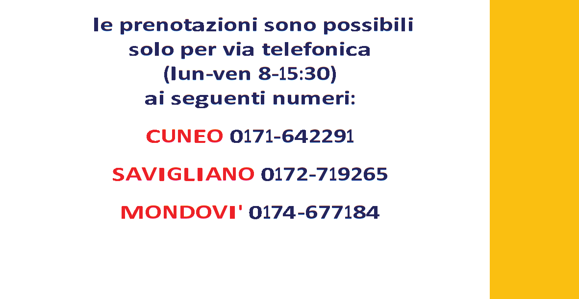 Per prenotazioni presso l’ospedale di Mondovi’, telefonare al numero 0174 677184 .